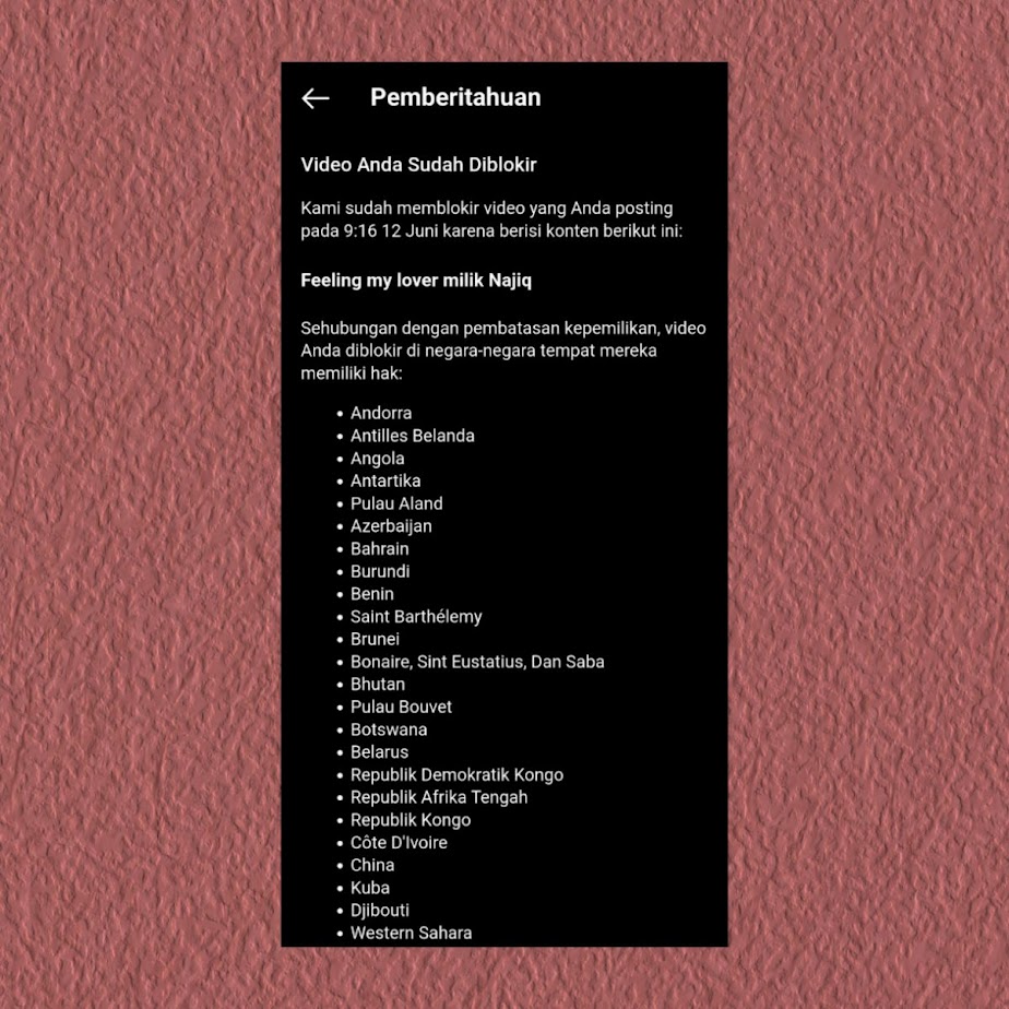 Memang video yang dihapus seolah kabar kurang baik, tapi sebenarnya videonya tetap ada. Hanya saja bisa dilihat terbatas di beberapa negara.